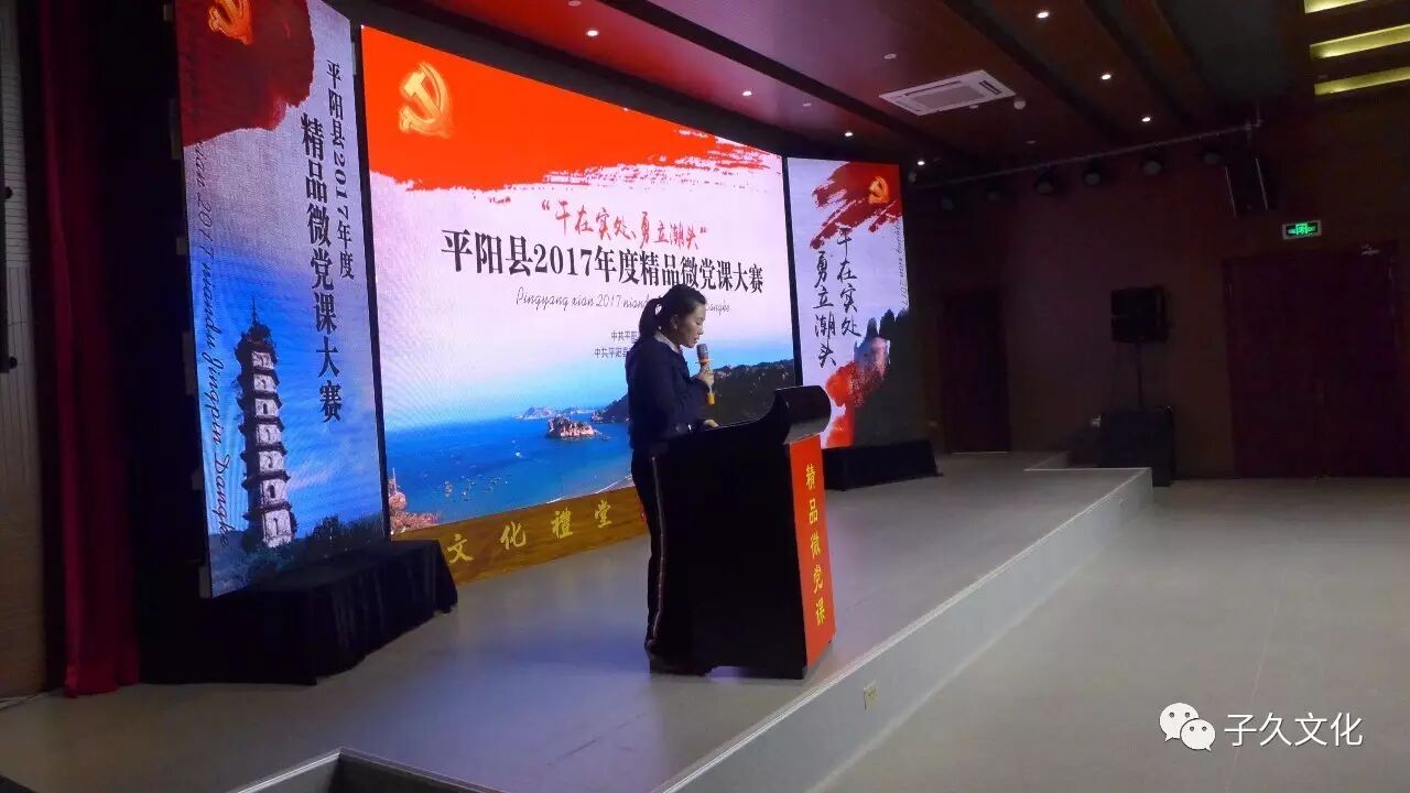 4月10日晚,由中共平阳县委宣传部、中共平阳县直属机关工作委员会主办的“平阳县2017年度精品微课堂大赛”决赛,在我公司子久文化礼堂举行。